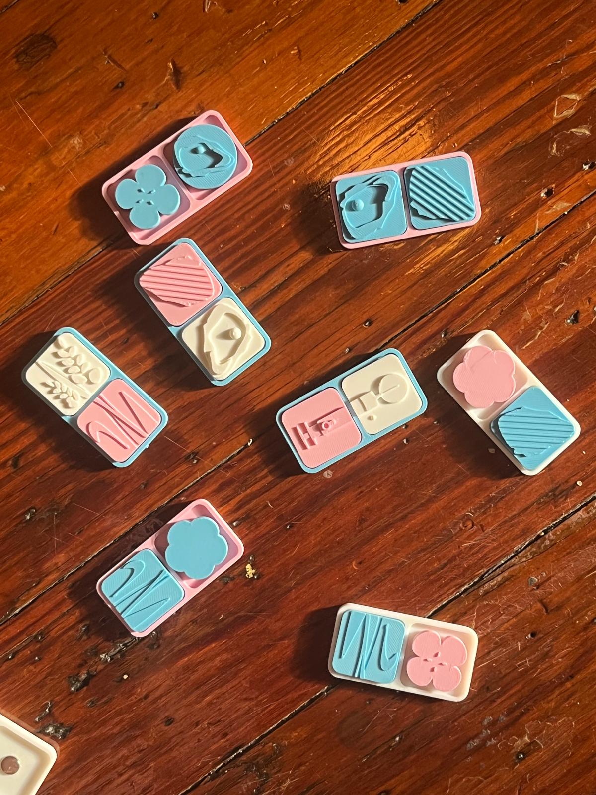 semicolinDESIGN is a queer-owned small business. For this pride season, we are introducing a subtle pride collection of Tac-tiles that feature colors from pride flags that honor a variety of queer identities. Take care of yourself and your friends with an identity-affirming, anxiety-reducing fidget that is easy to tuck away in your pocket if you're in a situation where you can't fully express yourself.